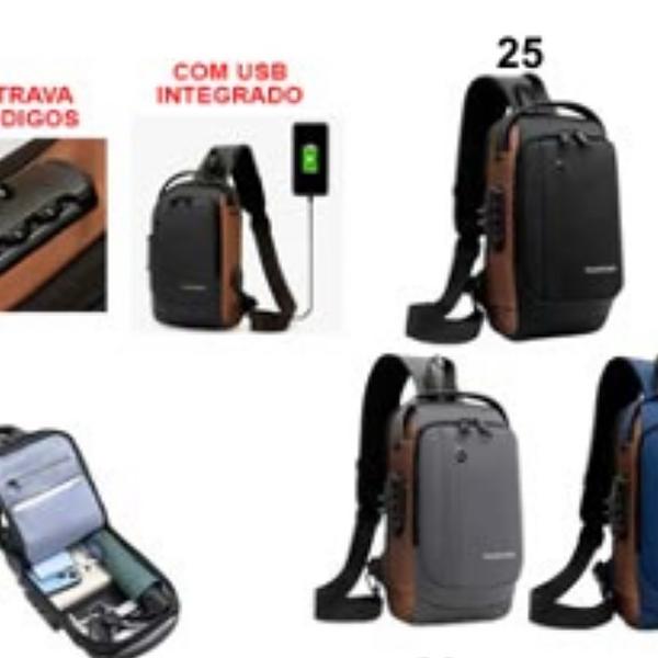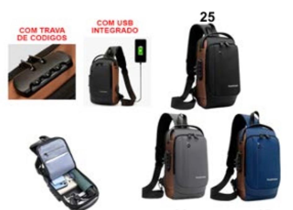 Bolsa de Ombro Multifuncional 15 •18*30"8cm • Anti-furto com diversos compartimentos • Tecido impermeável. • COM POWER BANK E USB BMB566