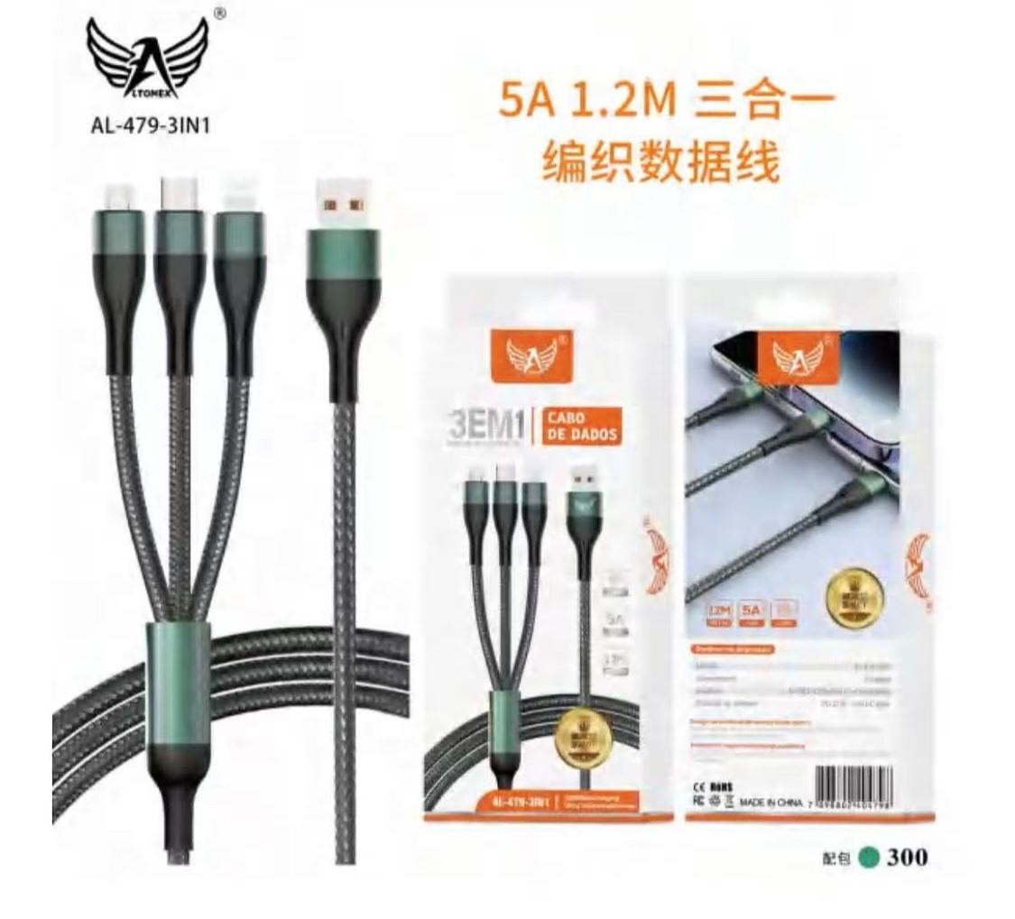 Cabo 3n1 v8/iPhone/tipo c 2M AL479