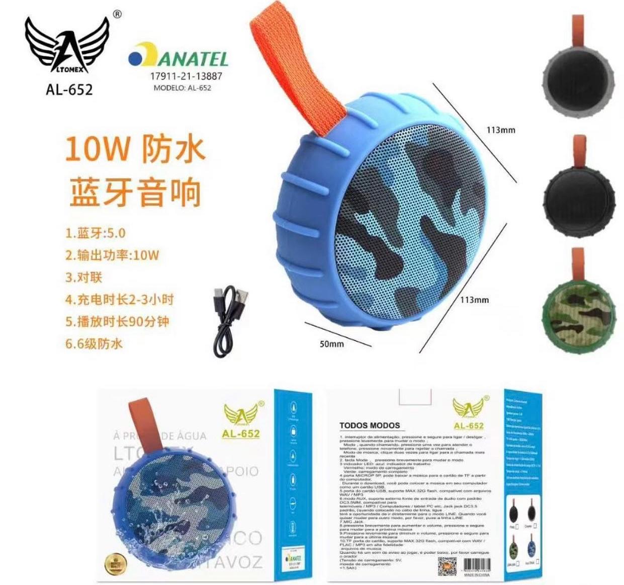 Caixa de som Bluetooth USB cartão memória prova água AL652