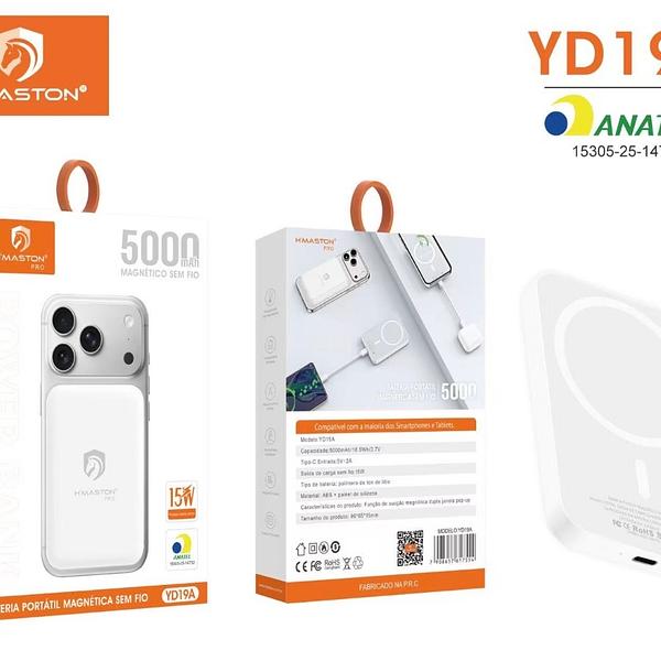 Carregador portátil indução 5000MAH 15W YD19A Caixa fechado com 100pcs