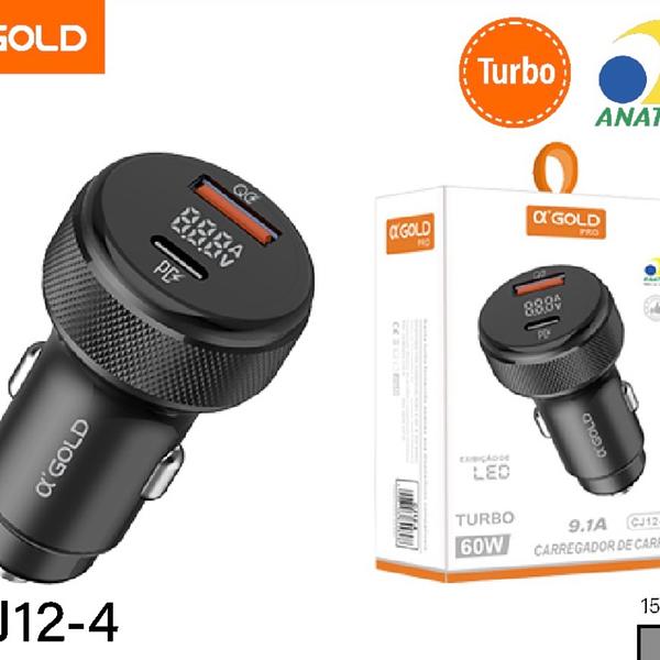 Carregador veicular 9.1A - PD+QCTurbo - 60W - Exibição de LED CJ124
