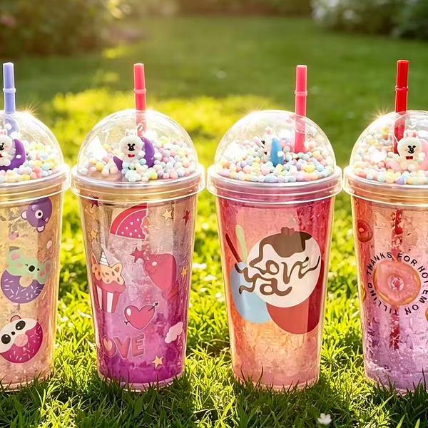 Copo Parede Dupla Glitter Canudo Acrílico Personalizado 450ML QW28