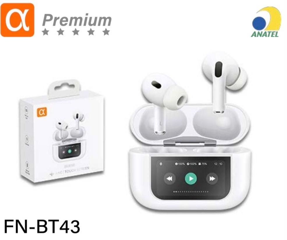 Fone de ouvido Bluetooth - Com tela touch screen - Case para carregamento - ANC/ENC FNBT43