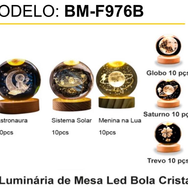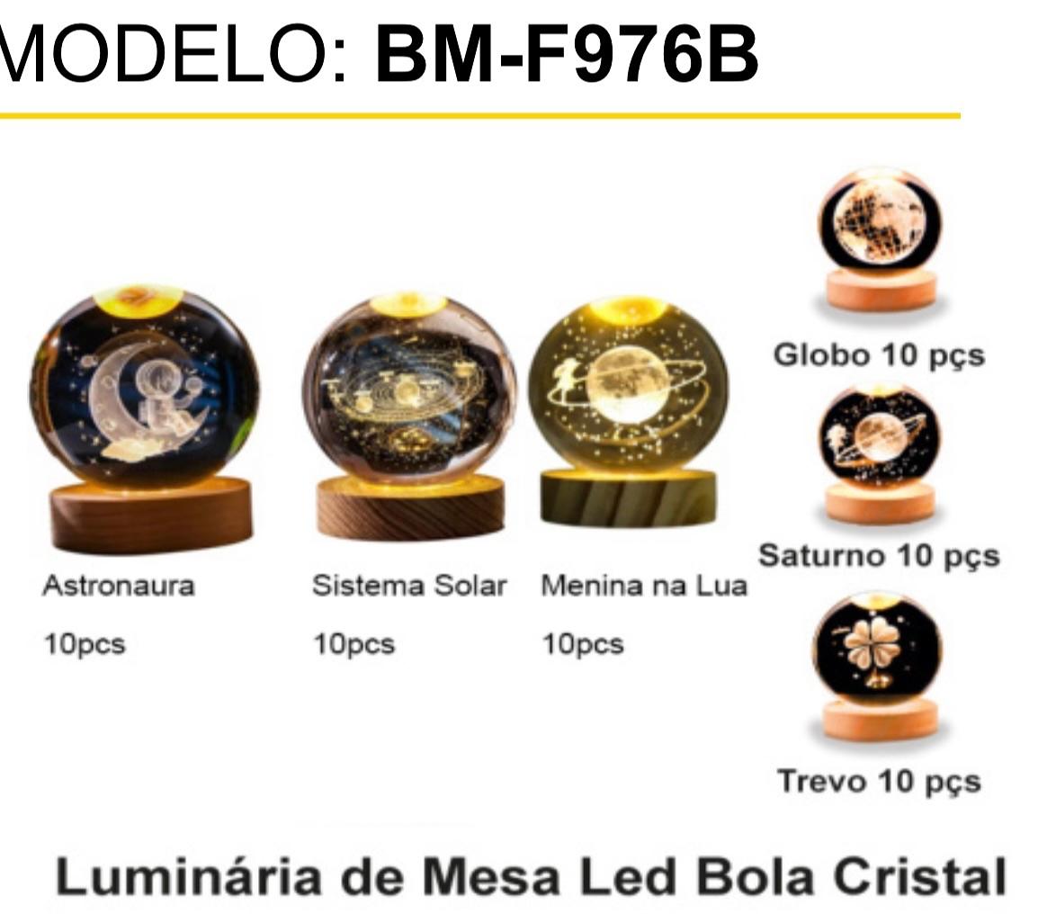 Luminária de Mesa Led Bola Cristal • 3D • LuZ RGB • Ultra transparente • Com cabo USB BMF976B