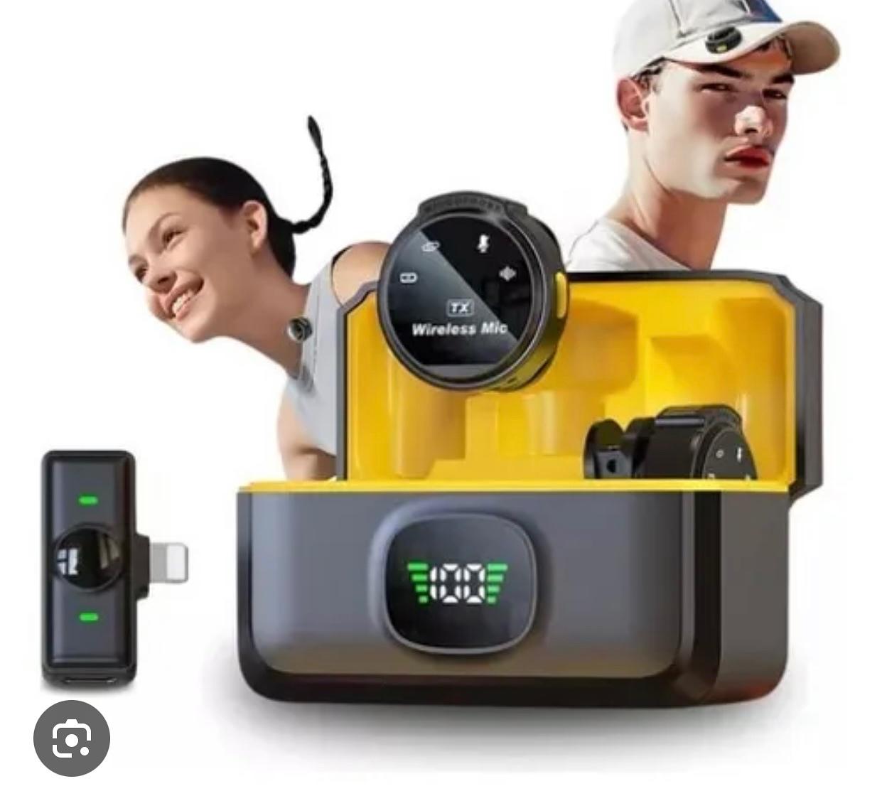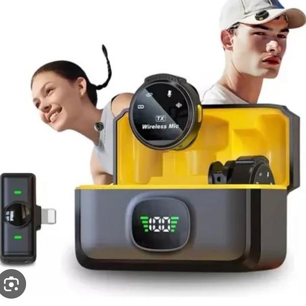 Microfone Sem Fio Profissional iphone com 2microfone com digital Com Estojo Magnético Recarregável Botão Redondo