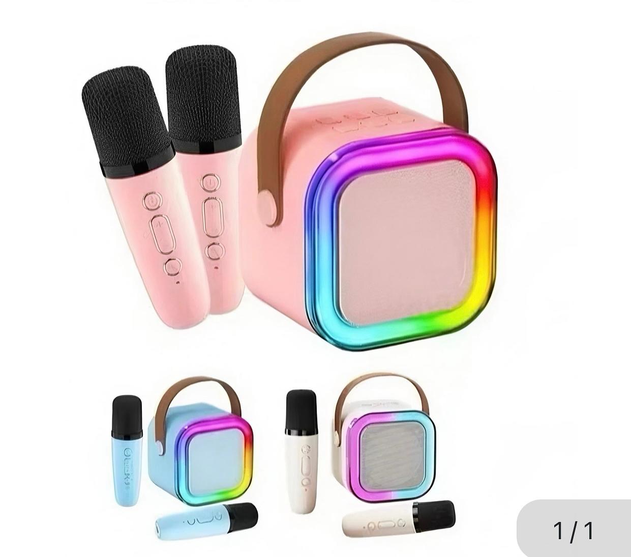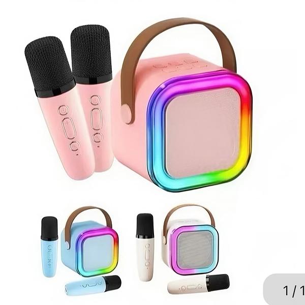 Mini Caixa De Som Com 2Microfone Sem Fio Bluetooth Karaokê com luz caixa fechado com 40pcs
