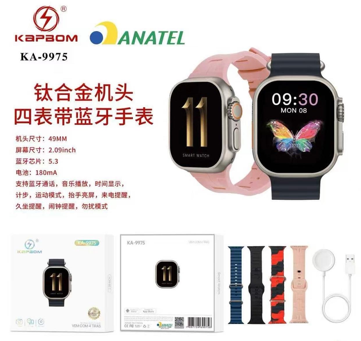 Relógio SmartWatch BT 49mm 4 Pulseiras KA-9975