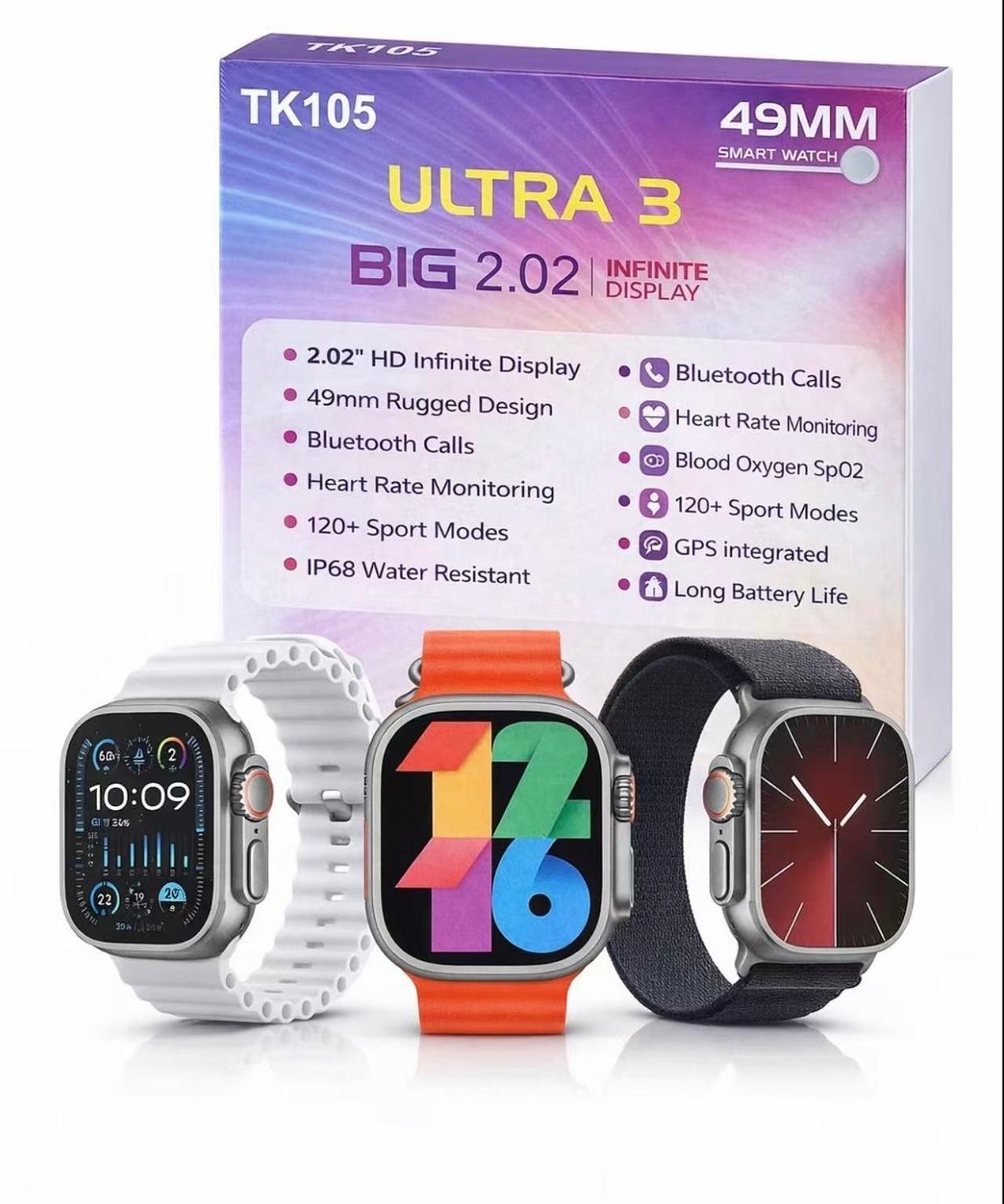 Smartwatch Ultra 3 TK105 49mm Tela 2.02” Bluetooth Chamadas e Monitoramento de Saúde